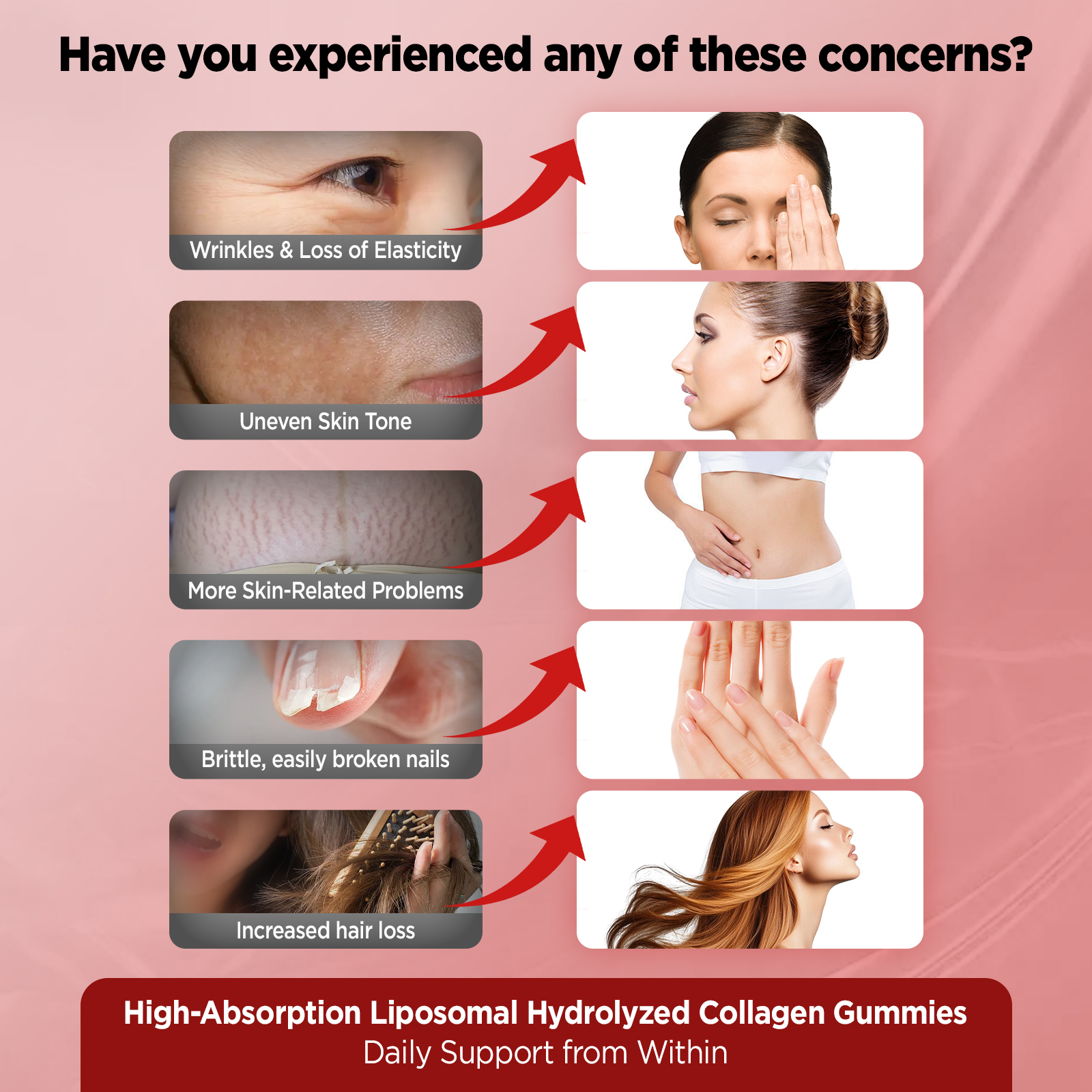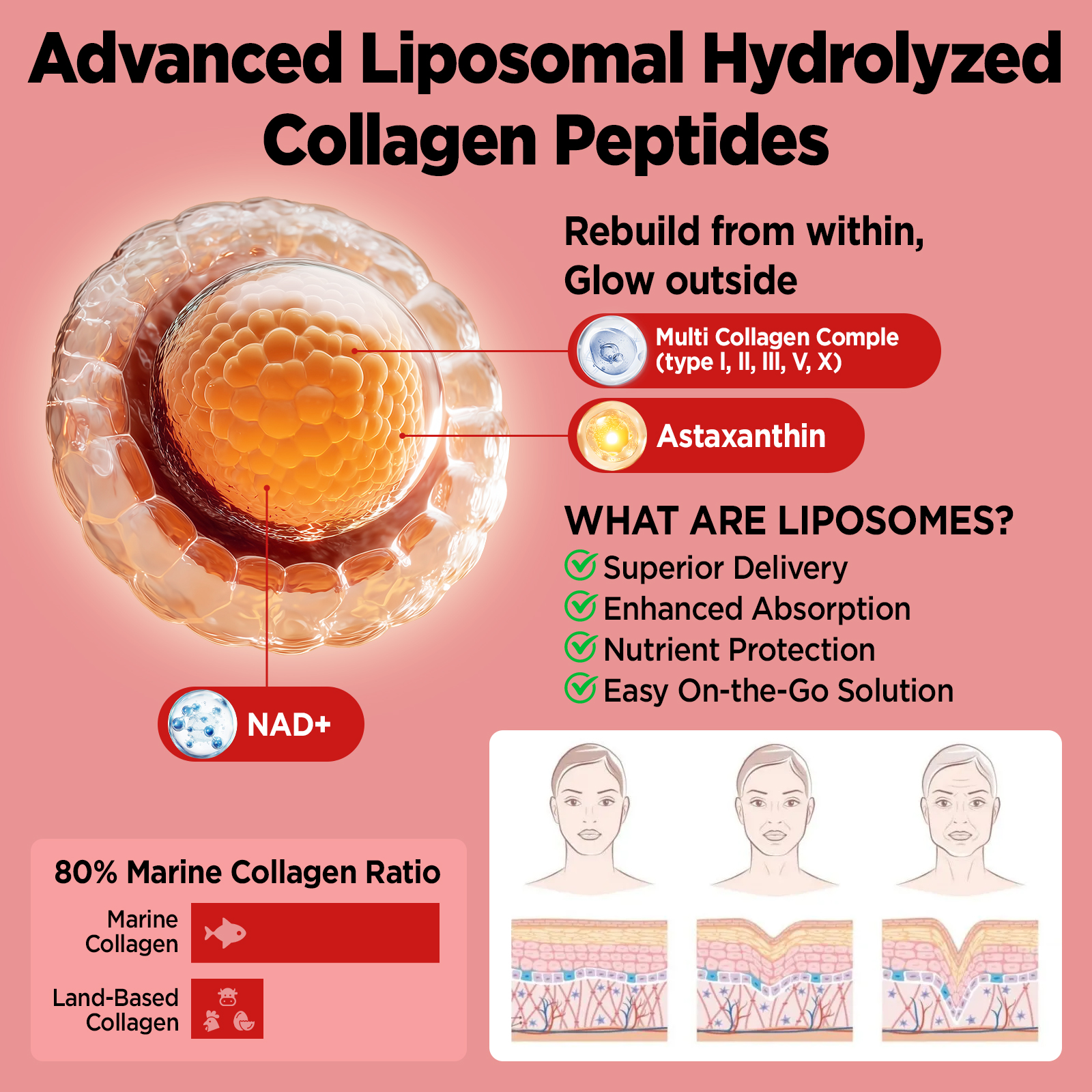 - DOUBLE THE ABSORPTION – EASIER THAN REGULAR COLLAGEN GUMMIES: Did you know most collagen doesn’t get fully absorbed? Our collagen peptide gummies use advanced liposomal delivery to protect key nutrients like collagen, astaxanthin, and NAD⁺ as they pass through your body—helping you absorb more of what matters. Just two collagen gummies a day support healthy skin and hair, because your body is finally getting collagen it can actually use