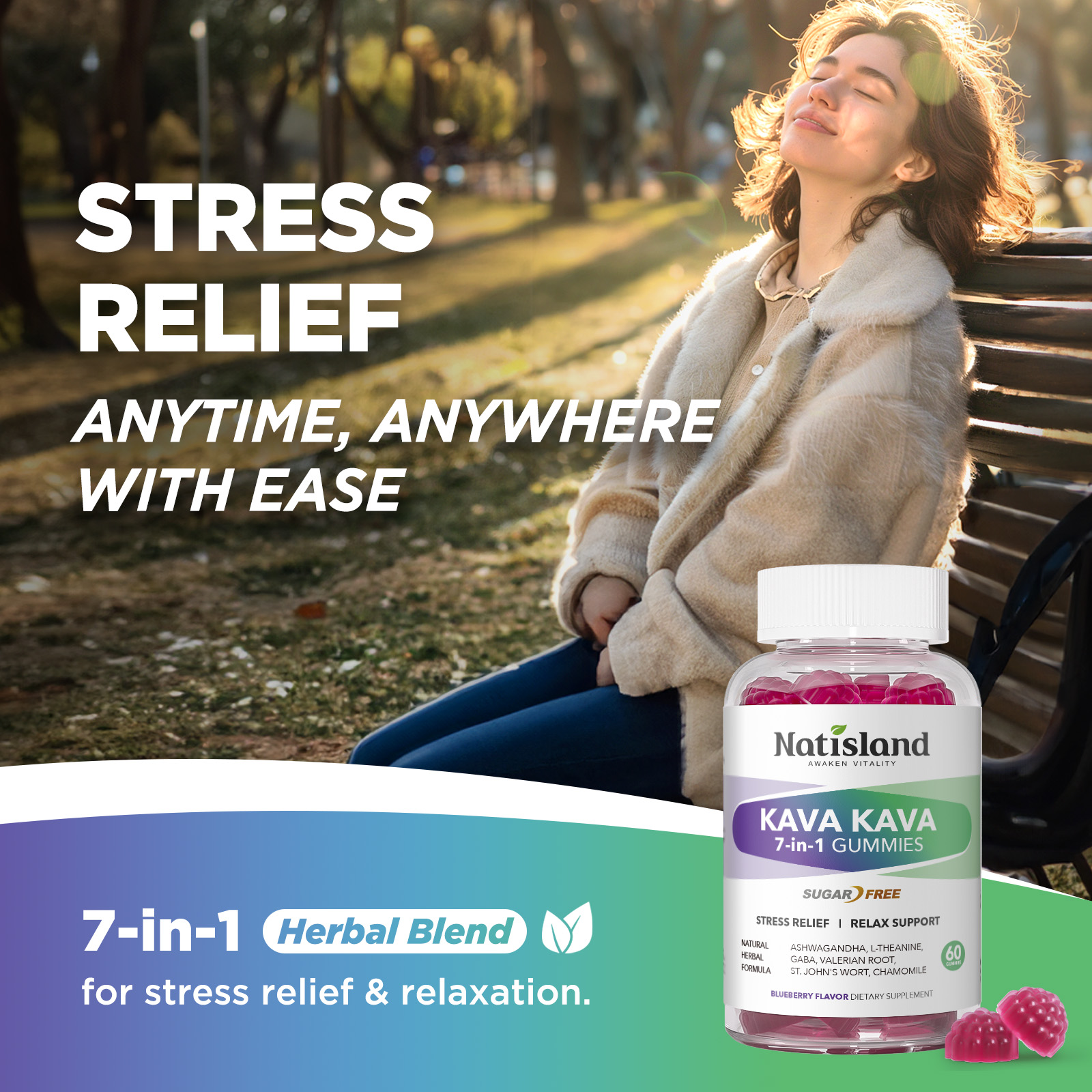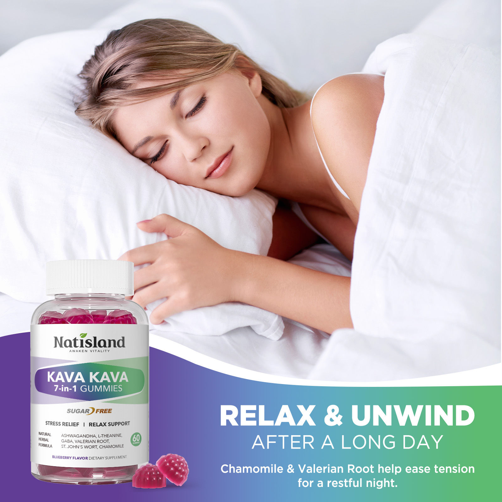 - Herbal Blend for Stress Relief & Focus: Our kava gummies contain 1000mg kava kava Root Extract along with Ashwagandha, L-Theanine, GABA, Valerian Root, St.John’s Wort, and Chamomile. This 7-in-1 crafted herbal formula helps support stress relief, promote relaxation, and enhance focus throughout the day