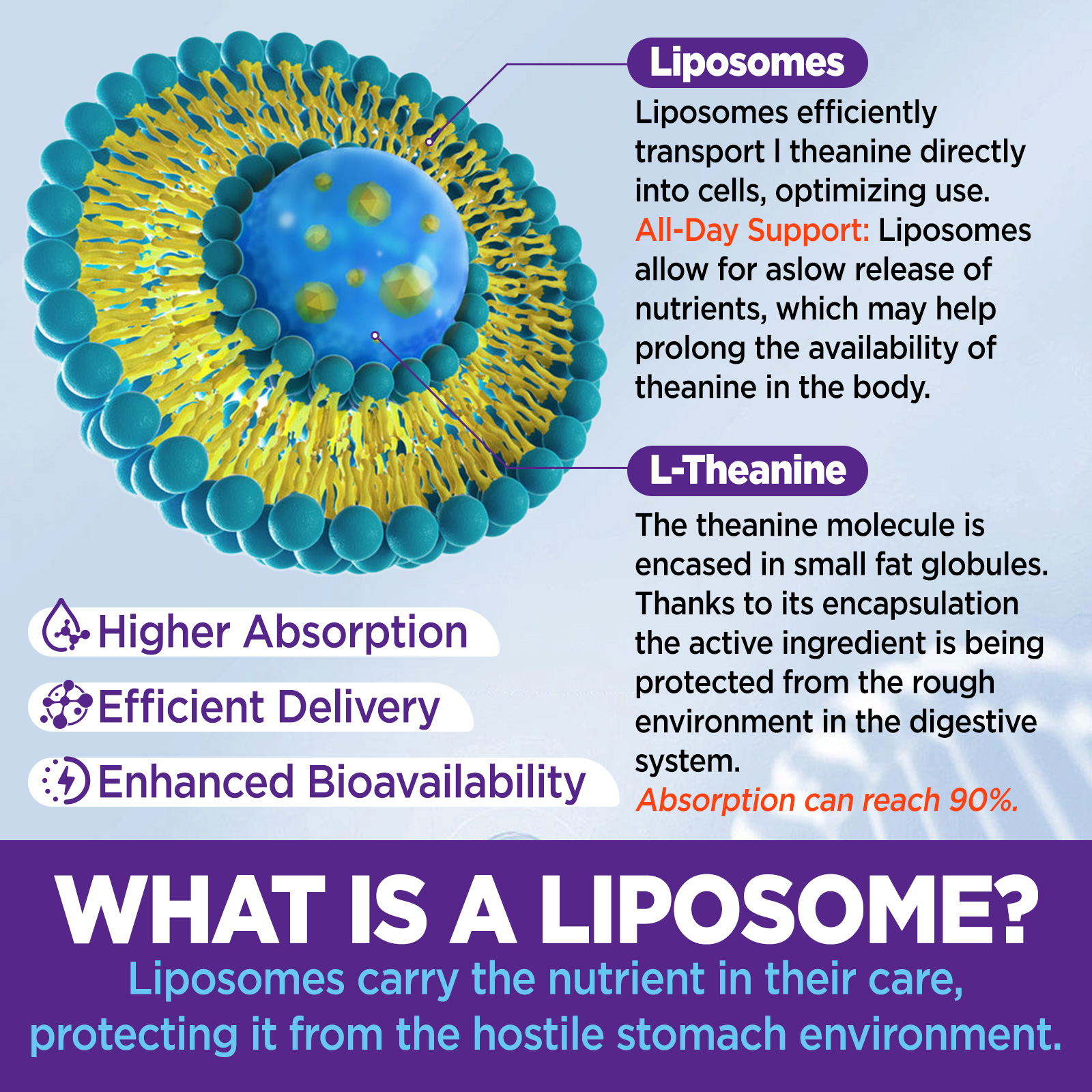 - Liposomal Theanine Gummies: Using liposomal technology, our l theanine chewable gummies formula offers higher absorption compared to traditional theanine supplements. Take 1 gummy for kids, 2 gummies for adults
