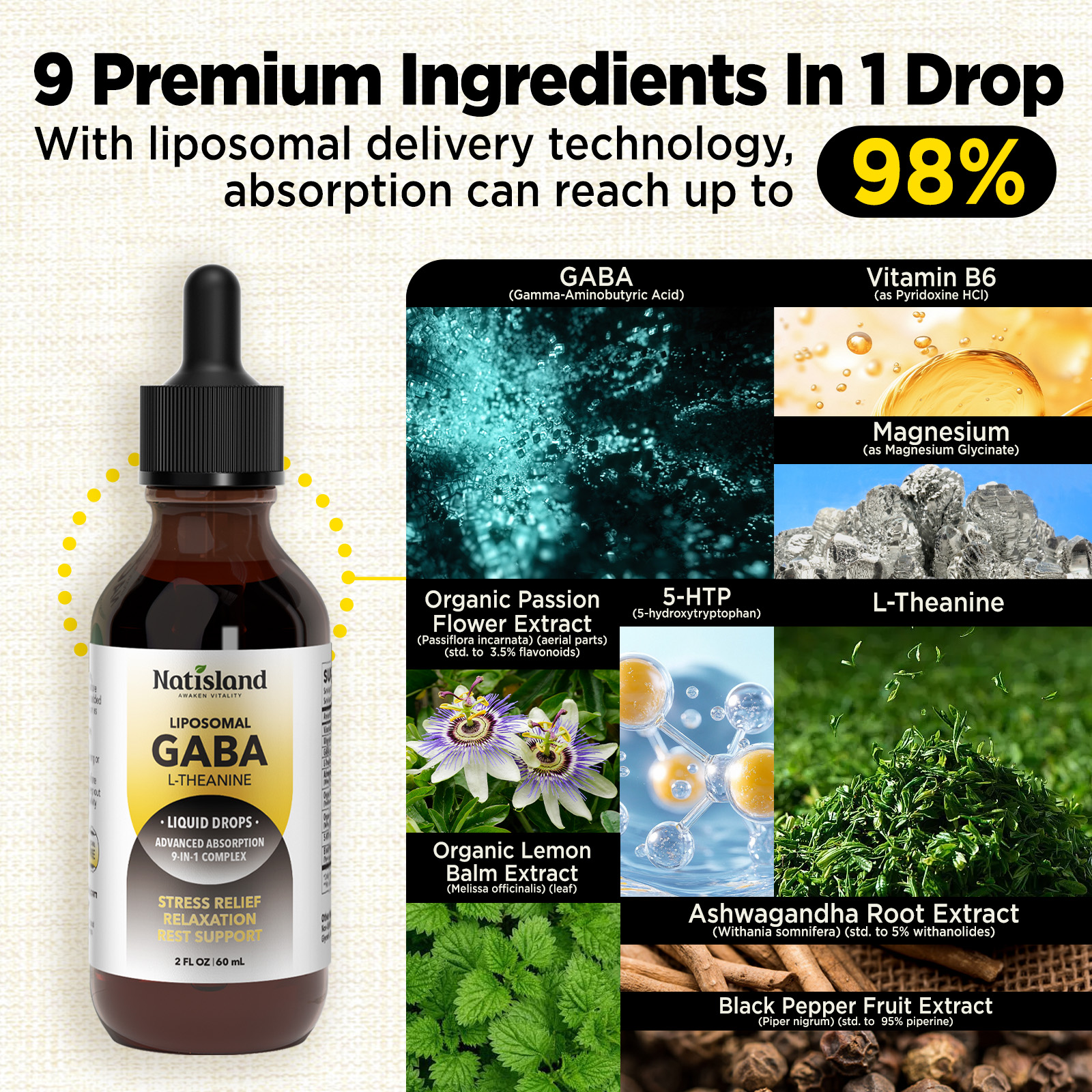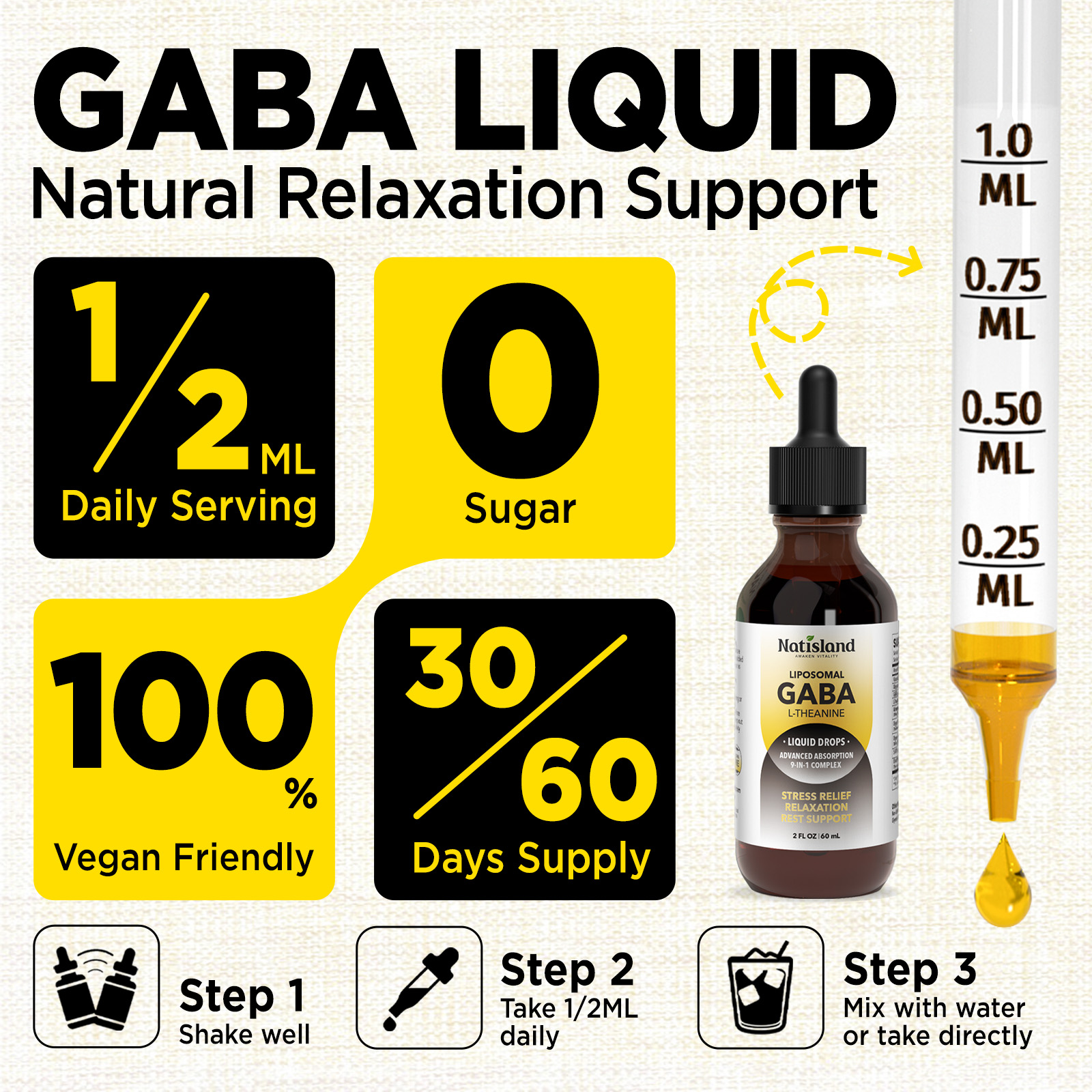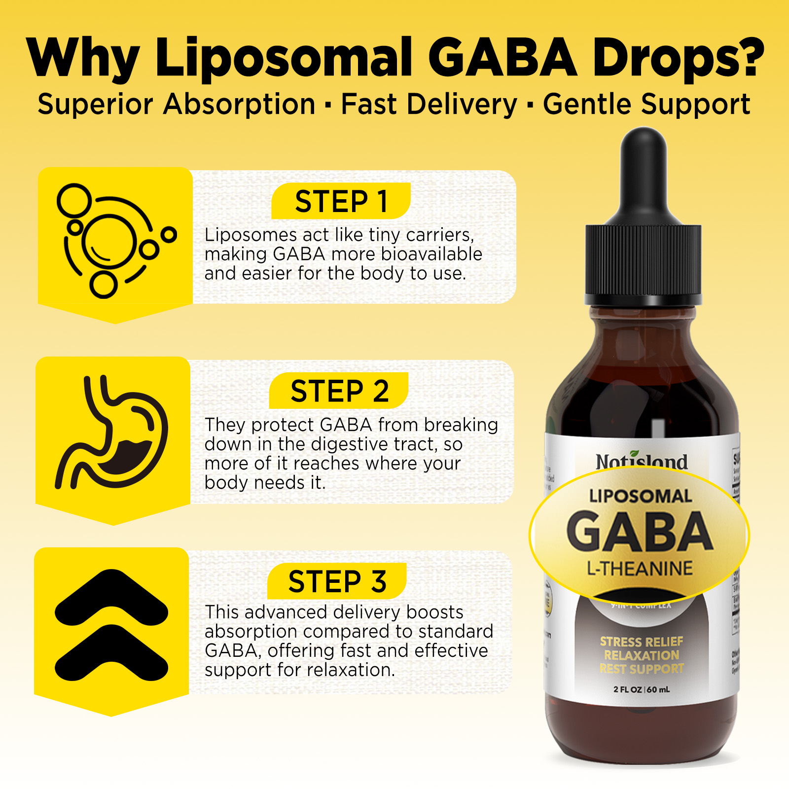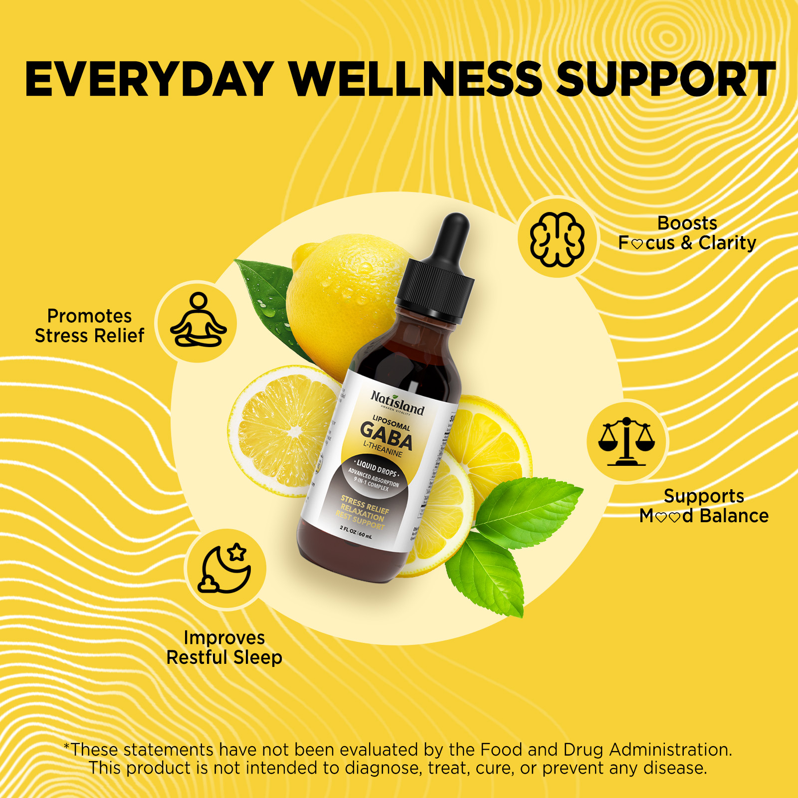 • PREMIUM QUALITY YOU CAN TRUST: Our liposomal GABA L-Theanine liquid is vegan, gluten-free, and NON-GMO. It is carefully crafted in a GMP-certified facility. This GABA drops are suitable for both adults and kids, offering a science-backed formula designed to support relaxation and stress relief for all ages