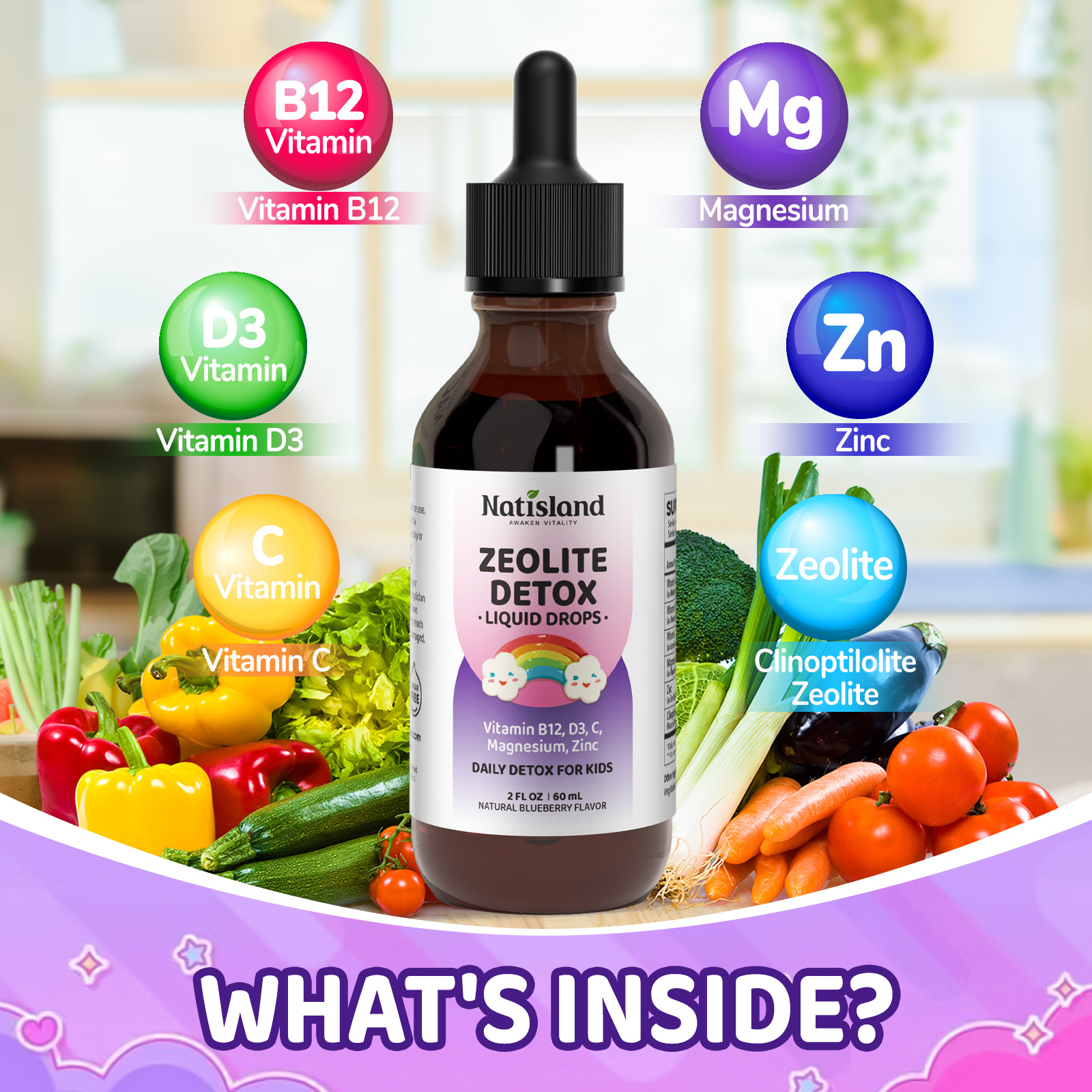 - Powerful Zeolite Detox Formula: NATISLAND use high quality clinoptilolite zeolite as the main ingredient to help kids. In addition, we combine vitamin B12, C and D3 as the auxiliary, which is helpful to the health of kids and adults. It can also boost the body’s immune system and support energy